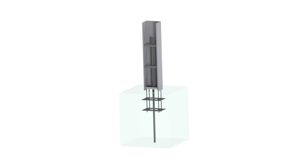 Massiver Fundamentanker aus Edelstahl. Vorabmontage - versenkbar im noch nicht vollständig abgebundenem Betonfundament.